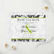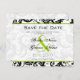 Tarjetas de invitación de boda con patrones florales de damasco vintage modernos en blanco y negro con ribete verde manzana. Perfectas para temas de boda rococó barroco, renacimiento medieval, art déco art nouveau, Gatsby de los felices años 20, victoriano o elegantes temas de boda de granja Venues.