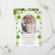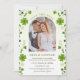 Tarjeta de guardar la fecha con imágenes de tréboles irlandeses y remolinos. Puede ajustar el texto según sus necesidades y colocar su foto para completar.