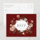 Elegante marco geométrico de follaje y flores en acuarela colorida de otoño, postcard de confirmación de asistencia de boda con solicitud de canción.
