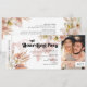 Invitación moderna de boda con tarjeta de embarque que presenta un fondo blanco simple, una foto de la pareja, hierba de Pampas y flores acuarelas rústicas, un código QR para eliminar o reemplazar con el suyo, y una plantilla de boda editable todo en uno que es fácil de personalizar.