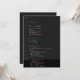 ¡Celebra el amor y el código con esta invitación de boda única para desarrolladores, programadores y temática tecnológica! Perfecta para parejas programadoras, este diseño creativo presenta referencias ingeniosas de código y una divertida vibra geek que impresionará a sus invitados. Totalmente personalizable para incluir sus nombres, fecha y detalles del lugar, esta plantilla es ideal para parejas conocedoras de la tecnología que buscan agregar un toque personal a su gran día. ¡Haga que su boda sea inolvidable con esta invitación única para codificadores y desarrolladores!