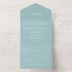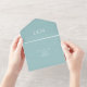 Cáscara de huevo Azul (código de color #A1C9C9) y tipografía blanca, solo texto, monogramado, minimalista, simple invitación de boda lisa que incluye una tarjeta postal de respuesta desprendible (3 en 1 según imágenes). El artículo incluye la dirección del remitente, una dirección de devolución y campos de plantilla de texto para la ceremonia de boda y recepción según lo deseado (editar texto para satisfacer sus necesidades únicas). También puede agregar las iniciales de la pareja, monograma. Invitación moderna y elegante con un presupuesto amigable para satisfacer sus necesidades.