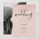 Una invitación de boda elegante que presenta tipografía moderna y un corazón dorado chic en un fondo de brillo ombre rosa dorado. El reverso presenta tu propia foto especial. Diseñado por Thisisnotme©