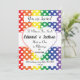 Esta invitación de boda con tema de orgullo es una forma colorida y única de invitar a familiares y amigos a su próxima boda. Con un fondo de rojo, amarillo, azul, verde y púrpura coronado con corazones blancos, es una forma brillante y alegre de anunciar su amor. Los nombres, fechas y direcciones se pueden cambiar para ajustarse a sus detalles. Es una invitación verdaderamente única para la pareja lgtb.