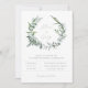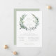 Hermosa corona de follaje botánico dusty sage pintada con acuarela, invitación de boda. Diseño de tipografía moderna y chic gris y salvia. La parte trasera de la tarjeta presenta un color sólido que se muestra en verde dusty sage, que se puede personalizar.