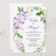 Hermosa y elegante invitación de boda con corona de lavanda, lirios y otras flores delicadas para tu boda. Fácil de personalizar. Party Parti PH © Más diseños disponibles en nuestra tienda.