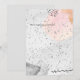 Esta elegante invitación de boda juega con los aspectos masculinos y femeninos a través de parches de acuarela. Utiliza algunos confetis y un fondo de superficie de papel para crear un ambiente ligero y alegre, pero elegante. Es posible que desee agregar un toque personal escribiendo los nombres de la pareja en la parte frontal a mano y agregando más detalles para la ocasión, ya sea a mano o utilizando una impresora adecuada; hacer sellos para transmitir sus mensajes en la invitación también podría ser una idea.