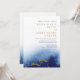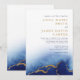 Estas elegantes invitaciones de boda de acuarela azul y dorado modernas son totalmente personalizables y perfectas para una boda contemporánea.