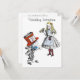 Esta divertida y original tarjeta de invitación de boda está diseñada para fanáticos del libro de 1865 "Aventuras de Alicia en el país de las maravillas" de Lewis Carroll. En la parte frontal de la tarjeta hay ilustraciones de Alicia y el Sombrerero Loco con ribetes de tartán añadidos a sus trajes, ¡perfecto para una boda escocesa o para novios con orígenes escoceses! Alicia está mirando la botella con la poción mágica que la reducirá a solo diez pulgadas de altura para que pueda entrar en el hermoso jardín. El Sombrerero Loco se ve, bueno, ¡un poco excéntrico! Si eres fanático de "Aventuras de Alicia en el país de las maravillas", esta es la tarjeta perfecta para informar a familiares y amigos de la fecha de tu próxima boda. Puedes personalizar fácilmente la tarjeta para adaptarla a la ocasión, por ejemplo, fiesta de compromiso, despedida de soltera, con tu fecha y el nombre