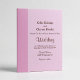 Un suave rosa rubor combinado con un rosa malva más profundo, creando un contraste cálido y romántico. El texto está estilizado en burgundy rico, combinando una fuente serif limpia para los detalles formales con una escritura fluida para los nombres y encabezados.