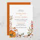 Elegante invitación de boda de follaje y calabaza de otoño pintada a mano con acuarela en hojas de color naranja, dorado y óxido.