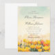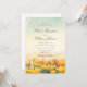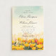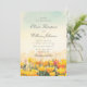 Esta invitación de boda romántica presenta un suave paisaje de acuarela de flores silvestres florecidas pintadas en tonos cálidos dorados y florales bajo un cielo suave. El estilo de pinceladas artísticas crea la sensación de un prado soleado a la hora dorada, lo que da al diseño una atmósfera emotiva y soñadora que a muchas mujeres les encanta para celebraciones sinceras e inspiradas en la naturaleza.