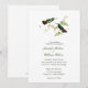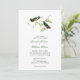 Invitación de boda moderna, elegante y sencilla de colibrí vintage y follaje.