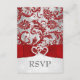 Establezca el tono para su boda de Navidad o invierno con esta tarjeta de respuesta de boda con patrón de damasco de purpurina falsa roja y gris plateado, elegante y económica, que tiene un fondo de copos de nieve blancos y una cinta roja impresa con un lazo y un par de joyas de diamantes y corazones unidos con purpurina roja falsa. Sería perfecta para un tema de país de las maravillas de invierno o para una boda de Navidad o Nochevieja con un esquema de colores rojo y plateado. Tiene divertidas respuestas de mad-lib que piden a sus invitados que respondan que estarán allí con campanas, estarán allí sin campanas, estarán... indecisos sobre las campanas, o con sus disculpas diciendo que no estarán allí, ya que escucharon que habría gente con campanas, o no estarán allí, independientemente de la controversia de las campanas. ¿Qué mejor momento para usar esta divertida tarjeta de respuesta que con su boda de invierno o Navidad? ¡La gente puede incluso aparecer con campanas! ***POR FAVOR TOME NOTA de que no hay elementos en relieve en esta invitación. Todo está impreso plano. ***POR FAVOR TOME NOTA de que si cambia las fuentes o el tamaño de las fuentes, puede alterar la forma en que se imprime su invitación. Se imprimirá tal como lo ve en su monitor, así que si tiene problemas de aline