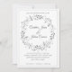 Dibujo lineal simple de una corona floral con un toque vintage.