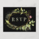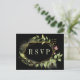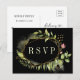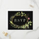 Una elegante tarjeta de respuesta de boda con follaje verde silvestre acuarela con flores rosadas en fondo negro. Para una personalización más avanzada de este diseño, ¡haga clic en el botón "Personalizar" arriba! También están disponibles artículos coincidentes.