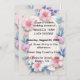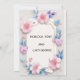 Un bonito diseño de invitación a la boda con elementos llamativos como flores rosas, corazones dibujados a mano y toques de acuarela suave. Los colores pastel (lavanda rosa claro, pálido, azul cielo y blanco cremoso) crean un toque romántico y encantador.