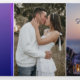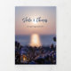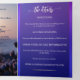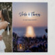 Invitación de boda de destino de playa o tríptico con dos de tus fotos favoritas. El diseño muestra una escena costera bohemia con linterna y vela con destellos de luz que dan vista al océano. El panel de detalles tiene un diseño púrpura moderno. Puedes usar el espacio también para agregar toda la información que pondrías en una tarjeta de inclusión, como alojamiento o direcciones, etcétera. Alternativamente, puedes usar la última página como tarjeta de respuesta.