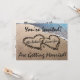 "¡Estás Invitado!" en texto elegante, o cambia fácilmente la redacción a estas invitaciones de boda populares. Una hermosa y original fotografía profesional de dos corazones escritos, dibujados en la arena a lo largo del agua del océano azul para significar amor y romance. Inserte fácilmente el nombre de la novia y el novio en cada corazón como se muestra, y la fecha debajo de ellos. Ponga su texto personalizado y detalles e información en la parte posterior de esta invitación popular. Gran concepto para próximos compromisos de verano, bodas de destino en la playa, aniversarios, o invita y anuncia "save the date" para la feliz pareja.