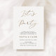 Este anuncio de boda informal también sirve como invitación a la recepción de la boda. La invitación de recepción a doble cara presenta "Let's Party" en letras de falso foil dorado con texto que anuncia el matrimonio de los recién casados y los invita a una recepción de boda informal. Personalice con su foto en el reverso.