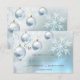 Tarjetas de invitación de boda con tema de invierno mágico elegantes y únicas. Nieve y copos de nieve con luces centelleantes, bolas en blanco, fondo azul plateado. Plantillas editables para que puedas agregar tu propio texto.
