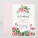 Eleva tu papelería de boda con nuestra exquisita Invitación de Boda de Flamenco Tropical Acuarela. Acepta el encanto de un paraíso tropical con este diseño encantador, que presenta flores tropicales pintadas a mano con acuarela como hojas de palma, monstera, hibisco y lirios hawaianos, hermosamente complementadas por dos flamencos elegantes. La fuente bohemio elegante añade un toque de sofisticación a este conjunto caprichoso, estableciendo el tono perfecto para una celebración de boda romántica e inolvidable.