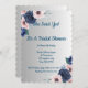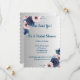 Invitación de boda de flores, boho, moderna, perfecta para una boda de primavera y verano. Hermoso fondo gris con flores rosas y azules. Imprimible y descargable.