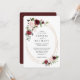Invitación de boda elegante y rústica con flores de color rosa y vino burgundy y marco ovalado dorado. La parte trasera de la invitación tiene un contorno floral en dorado sobre burgundy sólido. Sus invitados amarán este diseño único. Artículos coincidentes en esta colección.