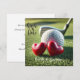 Invitación de boda de golf para golfista con bola de golf y corazón en green de putting.