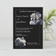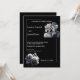 Esta invitación de boda presenta una novia y un novio esqueletos con flores negras y blancas para tu perfecta boda gótica de otoño y fiesta de Halloween. Edita fácilmente el texto para satisfacer tus necesidades.