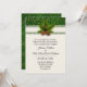 Hermosa invitación de boda de invierno hecha en marfil con gráficos de un patrón de remolino dorado y verde a lo largo del borde superior, con una cinta de marfil y un ramito de pino con piñas. Personalice todos los campos de texto para su boda de vacaciones / invierno especial. Están disponibles productos coincidentes.