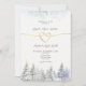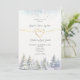 Invite a sus seres queridos a una celebración invernal acogedora con esta elegante invitación de boda, que presenta pinos pintados a mano con acuarela espolvoreados con nieve y un delicado corazón de cuerda dorada. Contra un suave fondo marfil con acentos azules helados, es perfecto para bodas rústicas de invierno, ceremonias en cabañas de montaña o bodas temáticas forestales. Personalice con sus detalles para un toque personal y encantador.