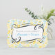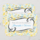 Una invitación de boda encantadora y caprichosa con un tema fresco y veraniego. Un marco caprichoso y elegante en el centro contiene tus datos. Diseñado con un patrón adorable y encantador compuesto por limones amarillos y flores azules pastel en un estilo ilustrado a mano.