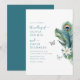 Presentamos nuestra "Invitación de Boda Elegante Mariposas Pluma de Pavo Real", una opción refinada y sofisticada para su día especial. Esta invitación emana elegancia discreta con su delicado diseño que presenta flores tropicales blancas, exuberantes hojas de monstera y palmeras, y elegantes plumas de pavo real, todas acentuadas por mariposas caprichosas.