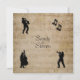 Un bonito diseño para un boda musical. Ponga los nombres de los niños en el frente haciendo que sea menos formal y dentro de la información normal o habitual de los bodas. El tono sepia da a esta elegante nota la música de las hojas y el aspecto antiguo.