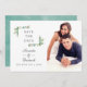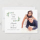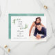 Tarjetas elegantes de estilo pastel con azafrán en acuarela para invitación de boda de Navidad con eucalipto, muérdago y pino, complementadas con un reverso de lavado de acuarela de color menta.