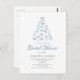 Celebre a la futura novia con estilo con esta tarjeta postal de invitación de boda de Navidad moderna que presenta un árbol de Navidad garabateado a mano hecho enteramente de lazos azules caprichosos. La disposición minimalista y la fuente de escritura elegante ofrecen una apariencia limpia y contemporánea, perfecta para una ducha de boda navideña con familiares y amigos. Totalmente personalizable con los detalles de su fiesta.