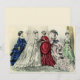 Ilustración vintage imagen de boda de amor y romance victoriano con la novia en su vestido de novia tradicional con velo preparándose para la boda con su madre, la dama de honor y sus damas de honor.