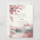 Un diseño moderno con paisaje coreano en colores rosa y sakura, invitación de boda tradicional coreana.
