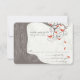 Iniciales en bodas de coral naranja y gris del bosque de remolino de árbol de tronco. Invitación de boda de pájaros de amor de coral de árbol de madera flotante