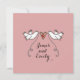 Una ilustración de 2 hermosas palomas sosteniendo una cinta ondulante con un corazón de amor adjunto.