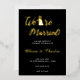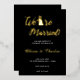 Celebra tu unión con estilo y sofisticación. Esta invitación de boda de lujo presenta una tarjeta mate negro medianoche profundo combinada con acentos de lámina dorada brillante y texto blanco crujiente. En la parte delantera: “Estamos casados” estampado en negrita en gloriosa lámina dorada. La tipografía blanca contrastante presenta elegantemente los detalles de su evento.
