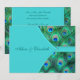 Elegante invitación de boda 5x7 con plumas de pavo real verde esmeralda, azul real y azul turquesa. Invitaciones de boda azules turquesa. Invitaciones de boda de pavo real azul turquesa. Invitaciones de boda de pavo real. Personalice con su elección de estilo de fuente y color de fuente.
