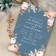 Abraza la elegancia boho chic con nuestra Invitación de boda de peonías azules elementales boho. Este diseño único presenta un delicado arreglo de peonías rosadas que adornan los bordes, creando un marco caprichoso y romántico. En el centro, los detalles de tu boda brillan, invitando a tus seres queridos a unirse a ti para celebrar tu día especial con un toque de encanto bohemio.