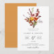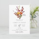 Elegante follaje de otoño y ramo floral en acuarela colorida, invitación de boda. El color de fondo, que se muestra en amarillo mostaza suave, se puede personalizar. Diseño de tipografía moderno y chic.