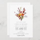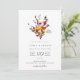 Invitación de boda de ramo floral y follaje de otoño en acuarela colorida y elegante. El color de fondo, que se muestra en blanco, se puede personalizar. Diseño de tipografía moderno y chic.