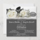 Invitación de boda elegante y chic con rosas blancas. El texto se puede personalizar para su día de boda o cualquier tipo de celebración.