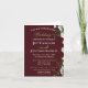 Esta elegante invitación de boda cuenta con un encantador fondo rojo oscuro bordeado con rosas blancas y vegetación en el lado derecho y que se extiende desde arriba hasta abajo complementado con el mensaje de invitación de boda en letras blancas y doradas.