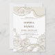 Elegantes rosas blancas y hojas enmarcadas por líneas curvas beige y marrones