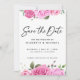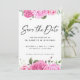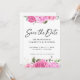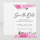 Invitación moderna de "Save the Date" con rosas rosadas de acuarela y tipografía de estilo manuscrito en negro personalizable. Este diseño presenta hermosas rosas rosadas y una gran tipografía de estilo caligráfico que puedes cambiar de negro a cualquier otro color que desees. También puedes personalizar todos los detalles y colores del texto en este diseño de Save the Date.